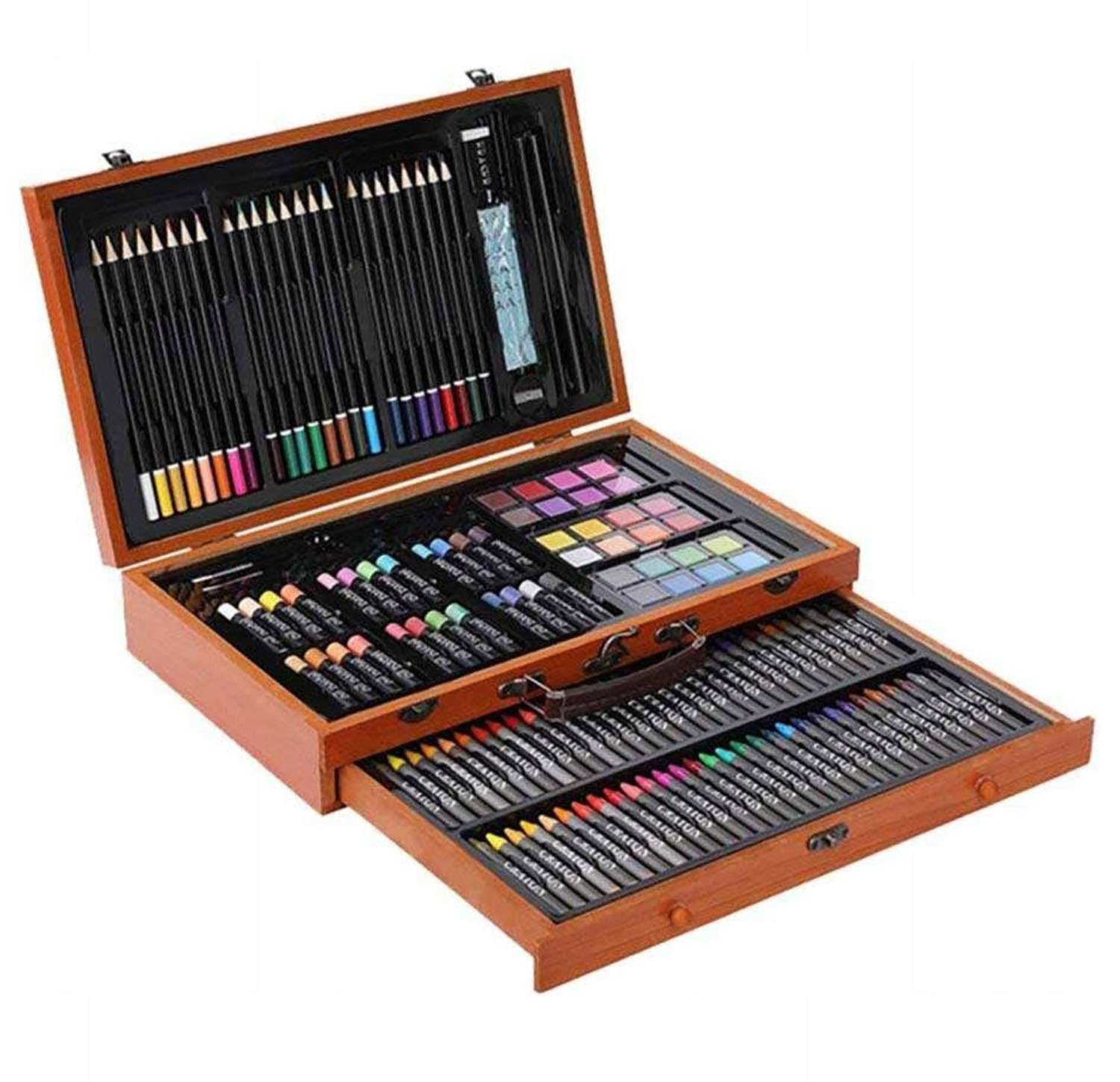 Dla dojrzałych artystów, którzy kochają sztukę, świetnym pomysłem może być zakup profesjonalnego zestawu 140w1 zapakowanego w niezwykle elegancką, a do tego funkcjonalną drewnianą walizkę. Tego typu zestaw artystyczny na prezent nie tylko pokazuje, że obdarowana osoba jest dla Ciebie ważna, ale także, że sięgasz dla niej po to, co najlepsze! W walizce znajdziemy pastele, kredki świecowe, ołówkowe, farbki ( 3 paletach) oraz akcesoria niezbędne do tworzenia. Zestaw sprawdzi się idealnie dla profesjonalnych artystów oraz amatorów czy nawet dla dzieci.