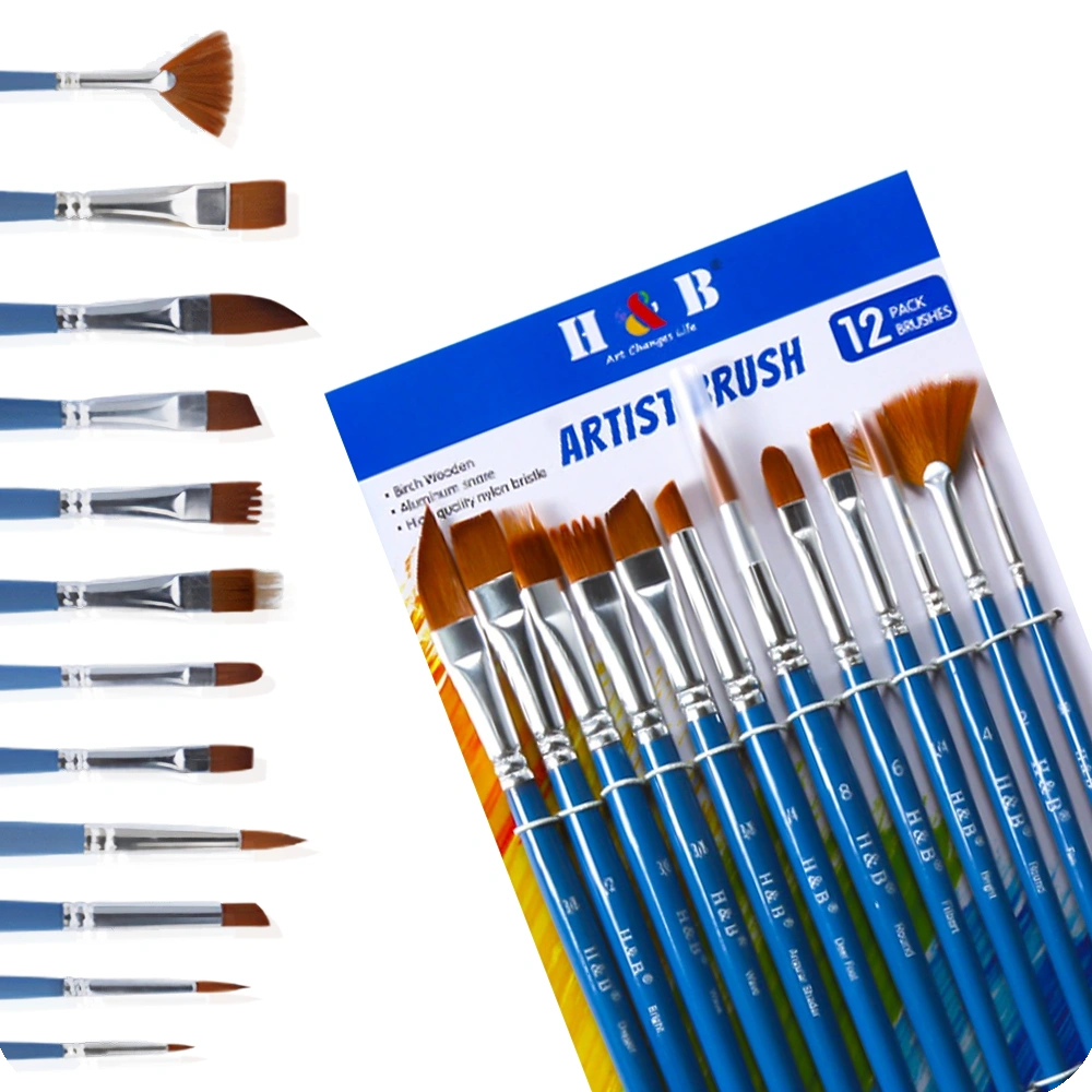 ✅ Zestaw profesjonalnych pędzli malarskich 12w1 do farb akrylowych, akwareli, olejnych