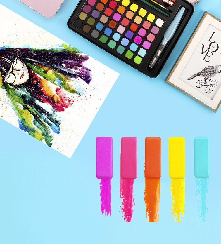 ✍️ Farba akwarelowa wyróżnia się unikalnym efektem przezroczystości każdej warstwy. Rozrabia się ją z wodą, szybko wysycha, ale nie jest odporna na wodę.