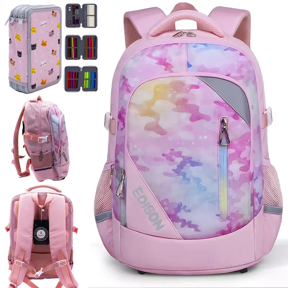 ☝️ Zestaw Szkolny: Piórnik Kotki i Tornister Edison Pro Ombre dla Dziewczynki, Klasa 1-8