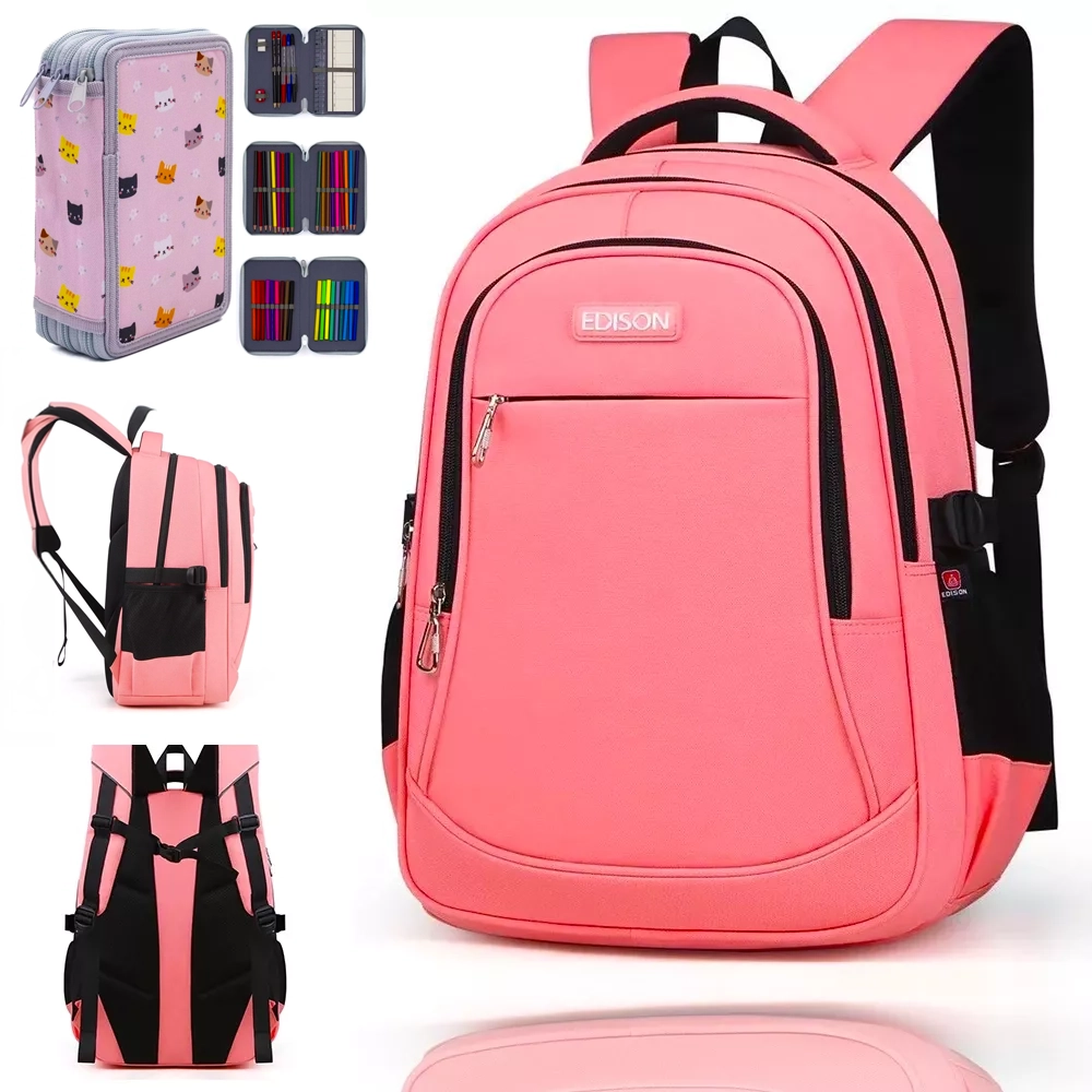 ☝️ Zestaw Szkolny: Piórnik Kotki i Plecak Edison Pro Różowy dla Dziewczynki, Klasa 1-8